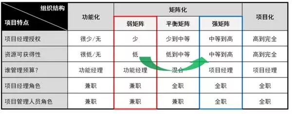 3、组织运作要从功能为主、项目为辅的弱矩阵向项目为主、功能为辅的强矩阵转变