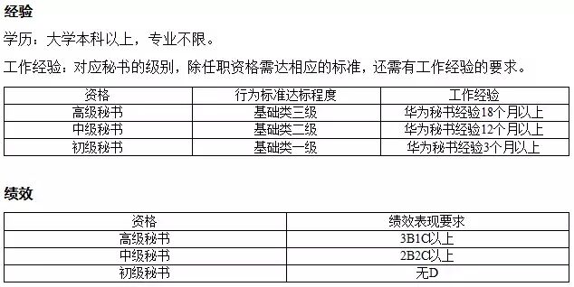 薪酬体系建立起来以后,我们又设计了一套秘书任职资格体系。华为的秘书不属于某个领导,是属于部门的,十几个人以上的部门都配一个秘书,负责部门之间的业务沟通、信息管理,当时华为的秘书大概有五六十人了。我们的任职资格体系是从秘书开始做起的,当时给华为的秘书分了5个级别,你如果到4级、5级,就可以到其它部门做管理人员。这样做了半年多以后,觉得秘书的能力提高了很多,这套办法非常管用。从那以后,才做了销售人员的任职资格体系、研发人员的任职资格体系。