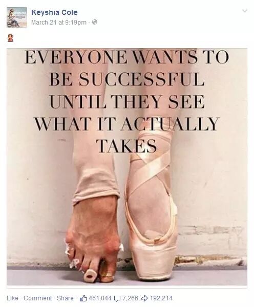 2015年3月21日,美国女歌手KeyshiaCole在自己的Facebook上发布了这张华为芭蕾脚的图片,并配以自己对图片的理解:“Everyone wants to be successful until they see what it actuallytakes. ”并由此引来Facebook人群的46万次点赞、19万次转发及7000个评论。