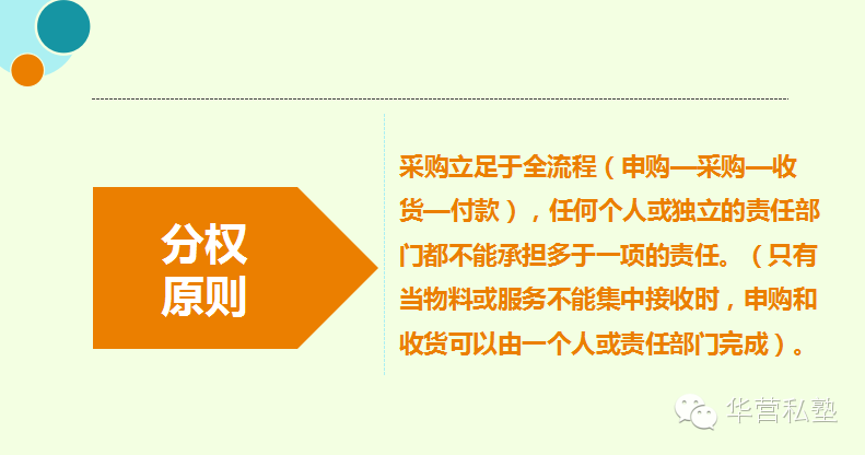 采购立足于全流程,而分权就是申购、采购、收货、付款——这四大核心关键角色必须分开。角色的分离是做好采购内控的基础。