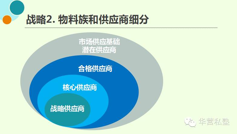 作为采购管理,要通过对供应商和物料族的细分管理,提高采购业务运作效率;并运用“80/20”规则,使每一物料族所对应供应商库合理化,以便最大限度地运用量的杠杆作用。