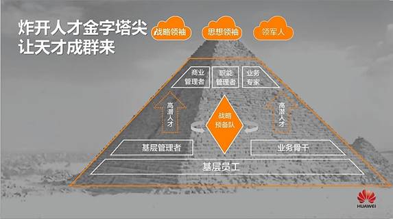 In the industrial age, the talent pyramidhad clear merits: order, a clear hierarchy, a clear division of labor, andefficient operations. Today, however, its weaknesses are also obvious: It isclosed. There is no exchange of energy with the outside world. Therefore, ourfounder Mr. Ren proposed the idea of blowing open the top of the talentpyramid. He encourages our employees to communicate with external experts,scientists, international organizations, and industry organizations. The greatideas sparked by such communication will help us to identify where our industryis heading. And these great ideas will benefit society, no matter who appliesthem.